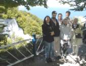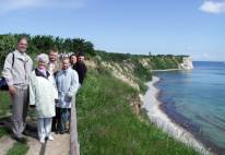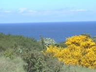 | Auf schmalen Wegen durchwandern wir den Dornbusch. Wir erfreuen uns an der See, an den steilen Hängen, an leuchtendgelb blühendem Ginster, an Sanddornbüschen, an Wiesen und wild-wachsenden Blumen. Wir atmen die klare, lieblich duftende Luft ein, wir danken dem Herrn für seine wunderbare Schöpfung. Natürlich wird mit Fotokamera und Video manch schönes Motiv festgehalten. |