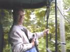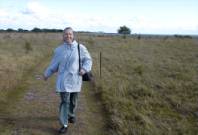 Hier kann man sich im wahrsten Sinne des Wortes fallen lassen und auch gymnastische Übungen vorführen wie z.B. unsere beiden Schwiegertöchter. Kleine Hügel überquerend und durch dichtes Gestrüpp gelangen wir bald in den kleinen Ort Grieben. Am Dorfeingang begrüßt uns im Garten stehend eine Vogelscheuche. Sie ist so geschickt gestaltet, dass man im ersten Moment eine echte menschliche Gestalt dahinter vermutet. |