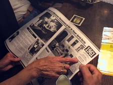 | Gegen 20:30 Uhr fanden wir uns mit unseren Kindern im urigen Hotelstübchen zum Abendessen ein. Unsere Kinder hatten nun ihrerseits eine Überraschung für uns. Liebevoll in Geschenkpapier verpackt dürfen wir voller Spannung den Inhalt „entblättern“. Wir sind sprachlos vor Freude. Was für tolle Ideen hatten sie sich einfallen lassen: 1 Flasche Madeira-Wein vom Jahrgang 1961, eine CD mit den schönsten Hits aus dem Jahr unserer Hochzeit und Aufzeichnungen über wichtige Ereignisse von 1961 kamen zum Vorschein. Danke, vielen herzlichen Dank, unsere vier Lieben! Gott segne Euch für Eure Liebe. |