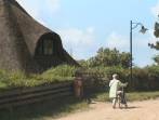 Wieder entdecken wir wunderschöne, rohrgedeckte Häuschen. Auf dem Deichweg entlang fahren wir zurück über Kloster nach Grieben. Hier lasse ich mir den leckeren Kräuterquark mit Kartoffeln schmecken. Vati genießt frischgebratene Kartoffelpuffer mit Apfelmus. Nach dieser Stärkung fahren wir weiter nach Norden in Richtung Altbessin. |