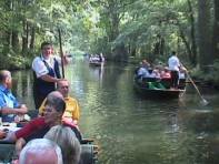 | Im Hotel erfrischen wir uns, gehen dann zum „Spreewaldhof“, wo böhmische Musikanten aufspielen und singen. Na ja, es gab schon Besseres an böhmischer Musik. Also entschließen wir uns, ein Paddelboot auszuleihen und auf der Spree zu schippern. Mein Schatz bedient die Paddel alleine, denn für meine Schultern ist das zu anstrengend. Schon beim ersten Versuch spüre ich die Schmerzen. Rund um Leipe paddeln wir auf der Hauptspree, den Spreearmen und den Fließen. Die Gegend ist richtig urig und romantisch zugleich, wenn die Sonnenstrahlen durch das Blattwerk der Bäume blitzen. |