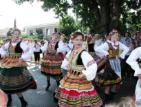 | Während der Mann zum Filmen abtaucht, biete ich der Frau auf „meinem“ Stein einen Platz an. Sie freut sich und plaudert nett mit mir. Jetzt ziehen die Trachtengruppen an uns vorbei, singend, musizierend und tanzend. Einige sitzen auf Wagen und Pferden, alles wunderbar geschmückt. Fischsuppe, Gurken, Butterbrot, Bonbons, Plinsen, Schnäpschen und Käsesuppe werden uns gereicht. Alles schmeckt lecker und macht richtig satt. Sogar eine reizende, polnische Trachtengruppe zieht an uns vorbei, tanzend und singend. Welch ein Erlebnis ! Allmählich endet der Umzug. Wir radeln heimwärts. Auf sonnigen Wegen gelangen wir bald an unserem Domizil an. |