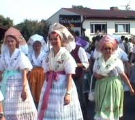 | Ich erfahre u.a. auch, dass Tante Lisa nach dem Tod von Onkel Theo durch die Behörden der DDR und durch etliche böse Menschen viel zu leiden hatte. Es wundert mich gar nicht; denn Leute mit Titeln und noch dazu begütert, wurden kalt gestellt. Trotzdem war es für mich eine große Freude, etwas über meine Verwandtschaft erfahren zu haben. Im nahegelegenen Straßencafe stillen wir unseren Durst und plaudern mit einem netten Ehepaar aus dem Erzgebirge. Dann suchen wir uns einen guten Platz am Straßenrand, um den vorbeiziehenden Trachtenumzug gut sehen zu können. |